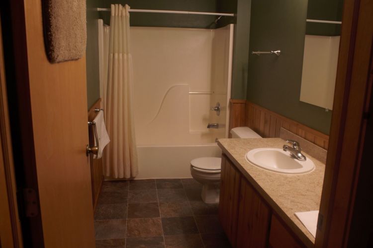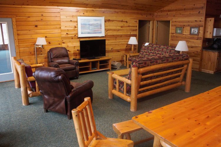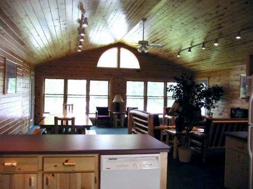The reunion cabin also comes equipped with a washer and dryer, air conditioning, two refrigerators, and dishwasher. It is also handicap accessible. The rate given is for a 4 bedroom based on 10, or the 8 bedroom based on 20 persons; the maximums are 14 for 4 bedrooms, and 25 for 8 bedrooms. Check out our Virtual Tour