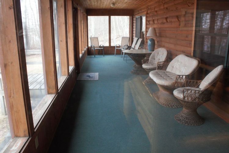 Four bedrooms and two bathrooms on each wing contain two rooms with one queen and one twin. One room has one full and one twin bed. The last room has one full, two twins. The cabin has a central large kitchen and great room. Two 9 x 35 screened-in porches accentuate each side for fantastic lake views!